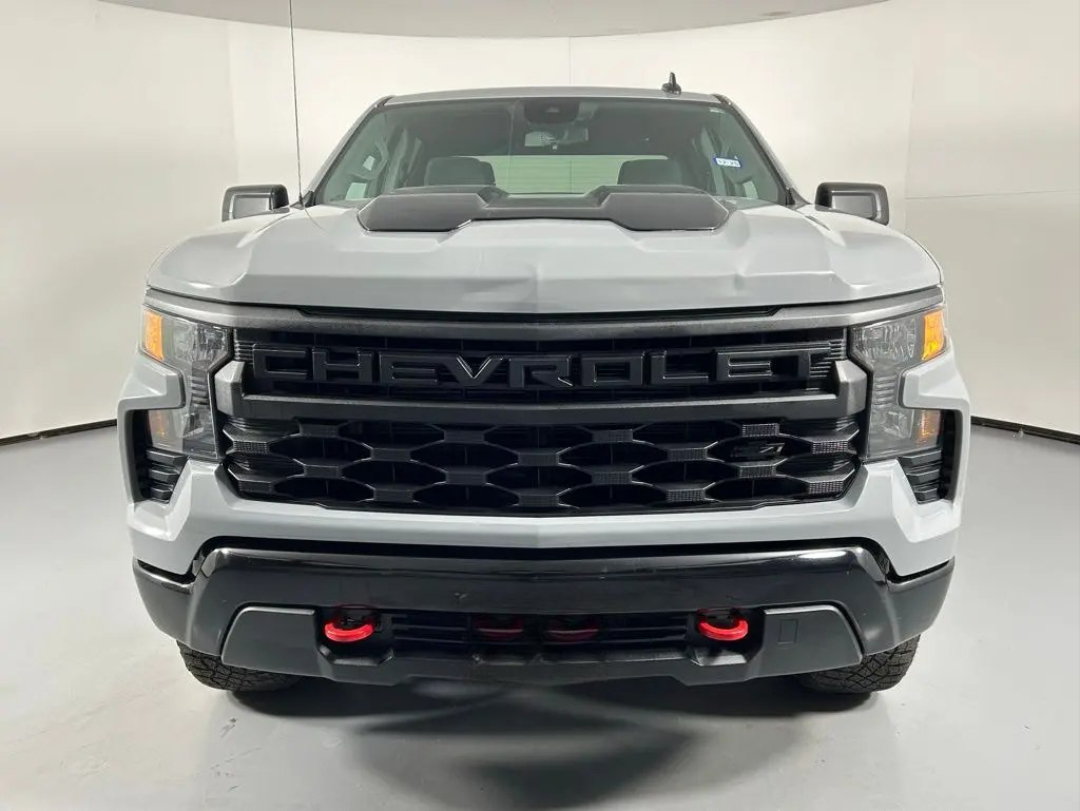 The 2024 Silverado 1500 Custom Trail Boss comes factory-equipped with a 2-inch suspension lift, Z71 Off-Road Package, Rancho® shocks, and aggressive Goodyear Wrangler DuraTrac® tires, ensuring it's ready for immediate action far beyond the pavement. Beneath the hood, a powerful engine delivers robust performance for both demanding off-road excursions and everyday hauling needs. Inside, you'll find a functional and comfortable cabin with modern amenities and connectivity, keeping you in command and connected wherever your journey takes you. With its bold styling and undeniable capability, the Custom Trail Boss makes a powerful statement on any terrain.