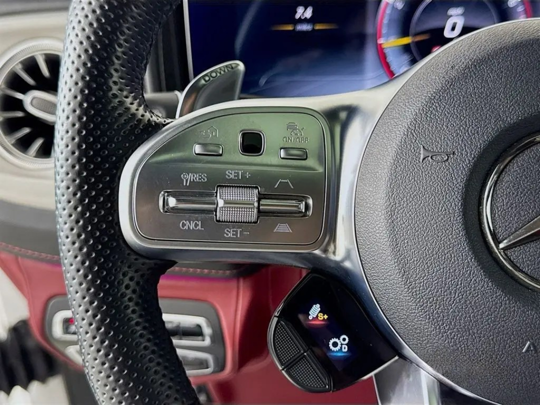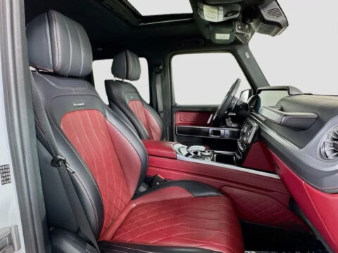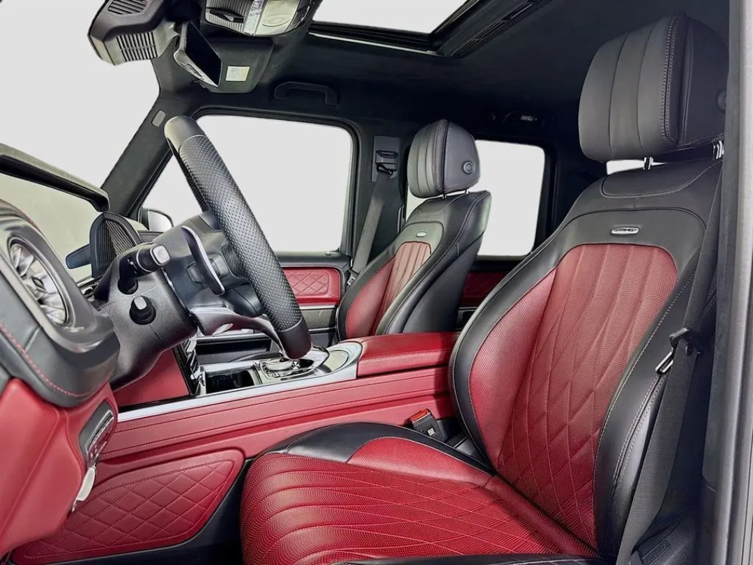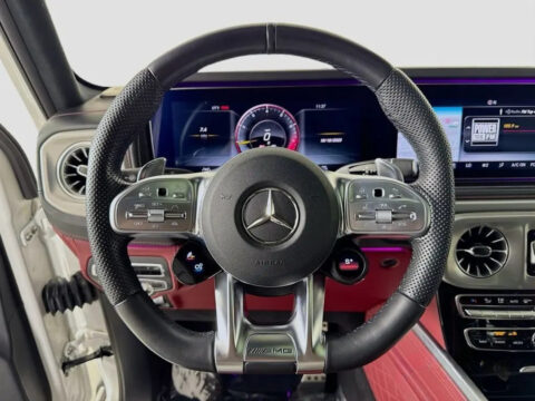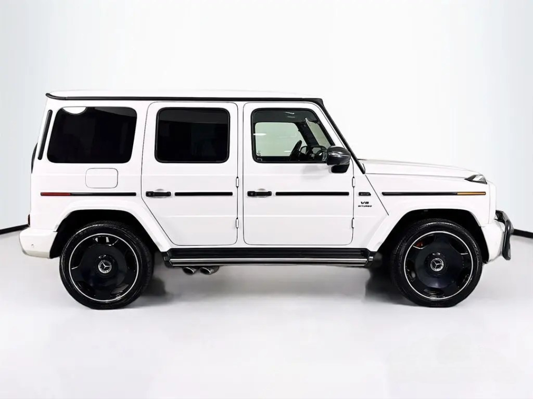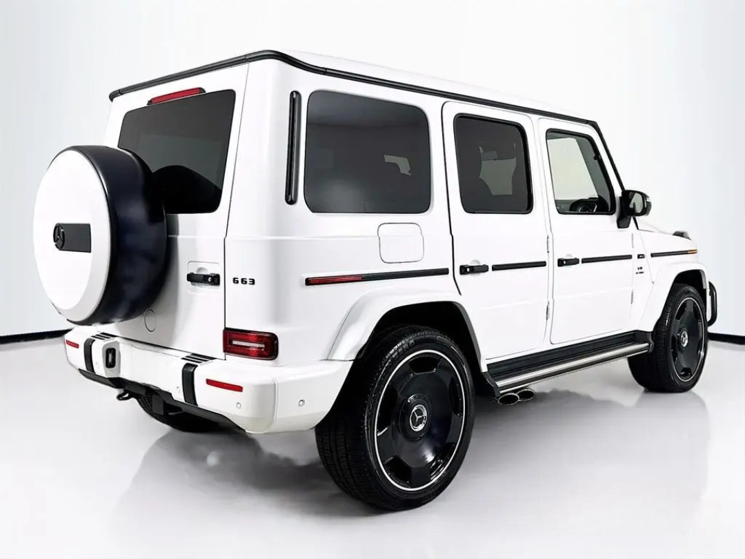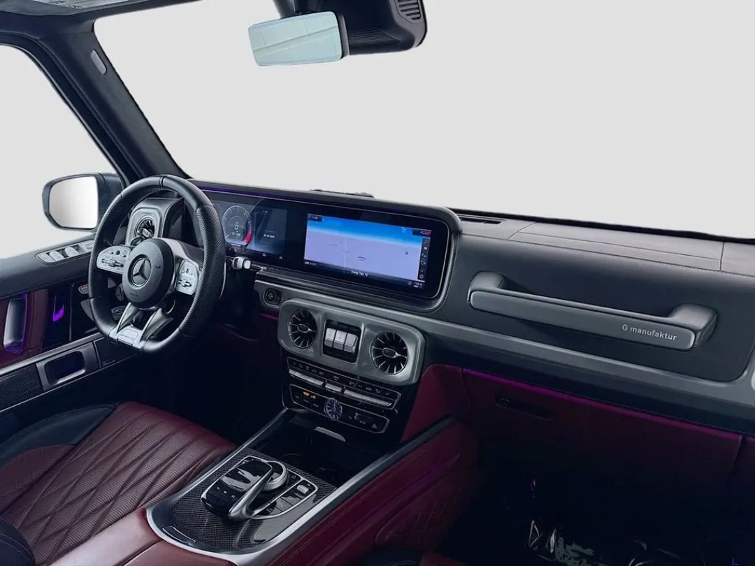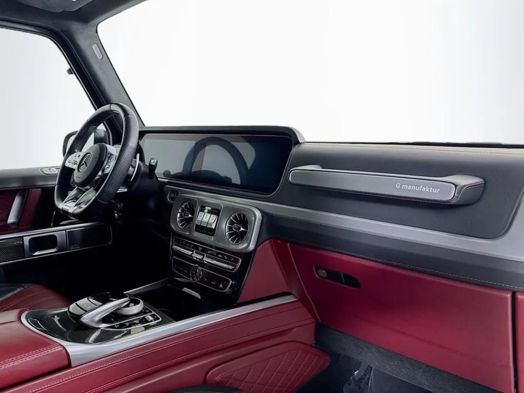 Under the hood lies a hand-built AMG 4.0L V8 biturbo engine, a symphony of engineering delivering a staggering 577 horsepower. This robust powerplant ensures blistering acceleration and an unmistakable, thunderous exhaust note that truly sets it apart. The G63's renowned 4MATIC all-wheel-drive system, complemented by three locking differentials, grants it virtually unstoppable capability, making light work of any terrain you dare to tackle. Step inside, and you're enveloped in a sanctuary of bespoke craftsmanship, cutting-edge technology, and premium materials. From the widescreen digital cockpit to its luxurious amenities, every detail is designed for an immersive and indulgent experience.